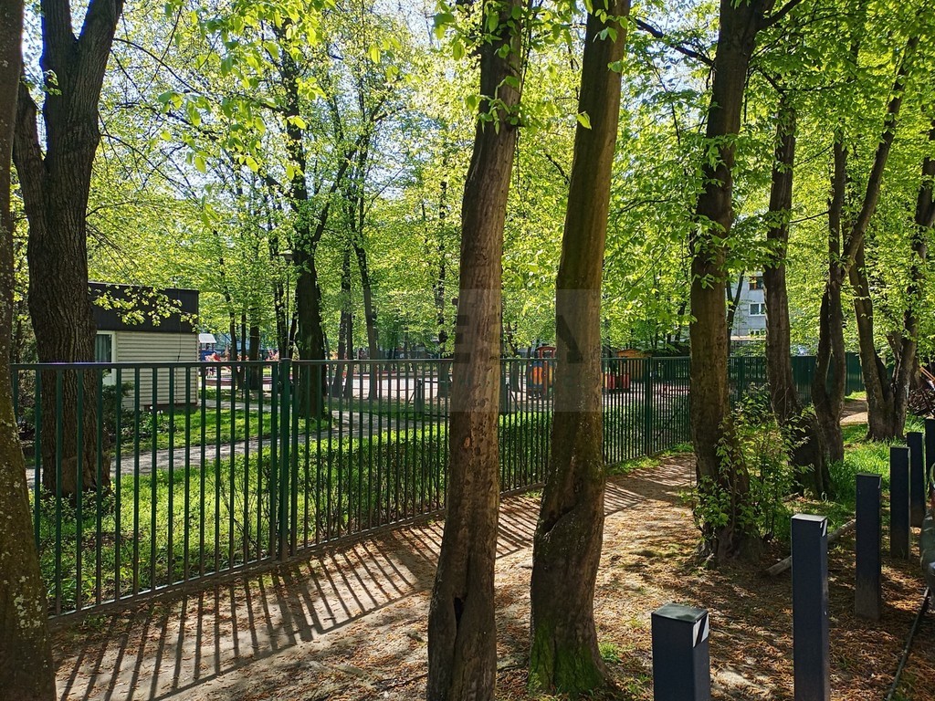 Na terenie wewnętrznym znajduje się przedszkole z dużą ilością zieleni wokół.